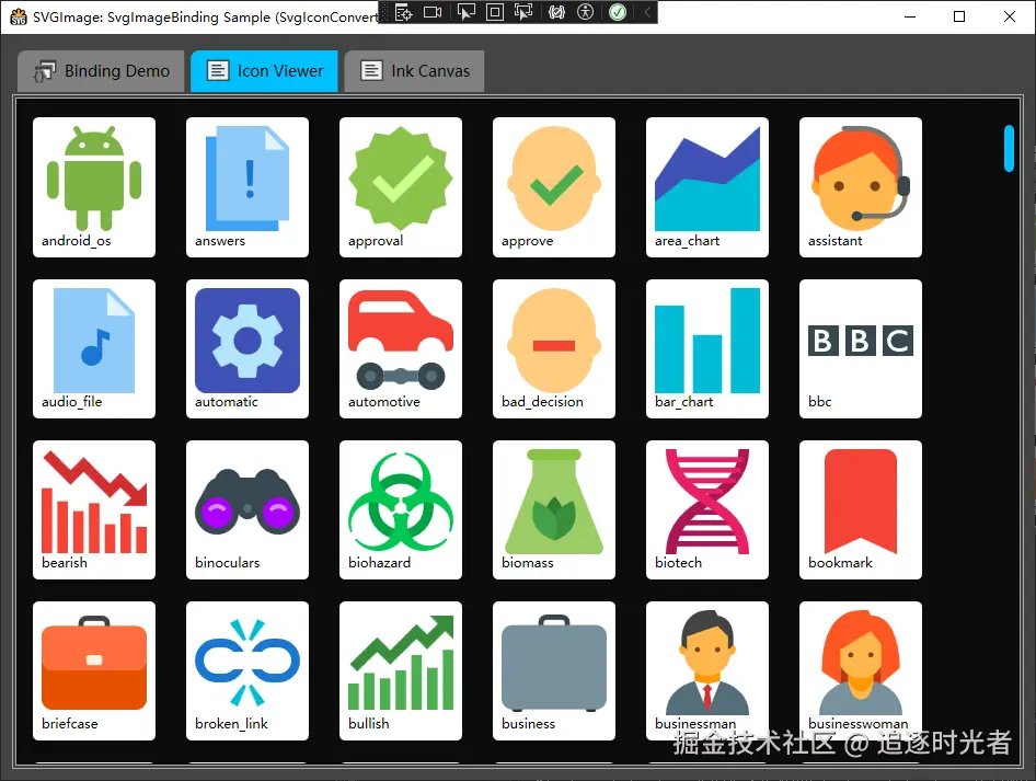 SVGImage 控件适用于需要在 WPF 应用程序中显示和操作 SVG 图像的场景。SVG 图像因其可缩放性和不失真特性,在需要高质量图形的应用中(如图表、图标、动态图形等)具有广泛应用。具体应用场景包括但不限于: