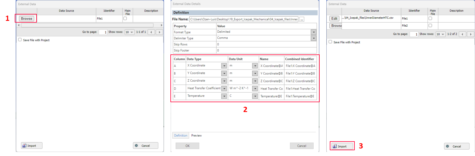 新的.csv文件需要包含变量名称的初始行。**注:**所有从 Icepak 导入的变量都放在默认的 Icepak 单元中。