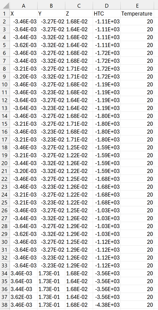 我们还需要添加一个额外的温度列,列出每组坐标的环境温度和传热系数。