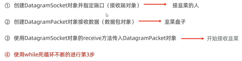 ③使用DatagramSocket对象的receive方法,传入DatagramPacket对象。