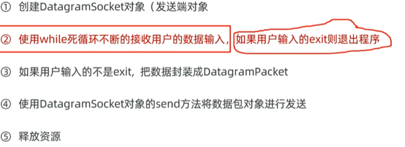 ①创建DatagramSocket对象(客户端对象)//只发不收则可以采用系统的随机端口号