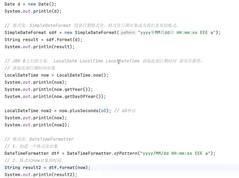 JDK8之后的方案,LocalDate、LocalTime、LocalDateTime获取此刻日期时间 。使用DateTimeFormatter来格式化日期。