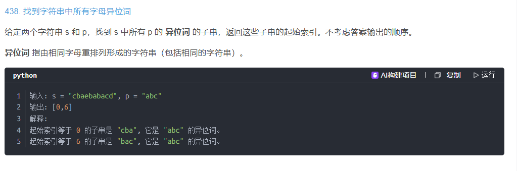 window == need,说明当前窗口是一个异位词 → 记录左端点