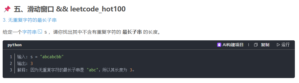 时间复杂度:O(n),每个字符最多进窗口一次、出窗口一次。