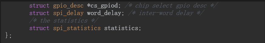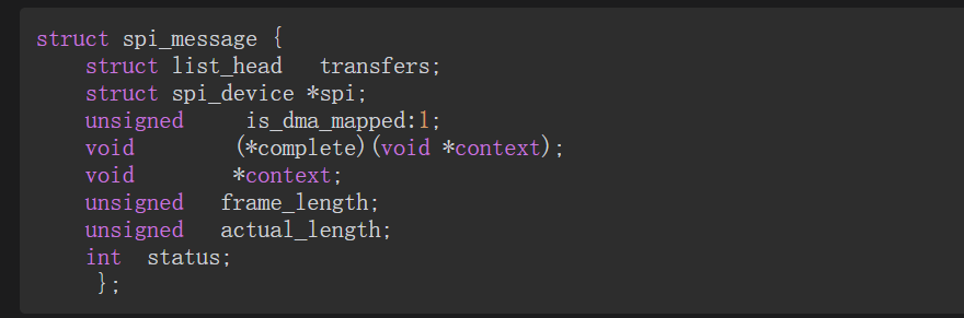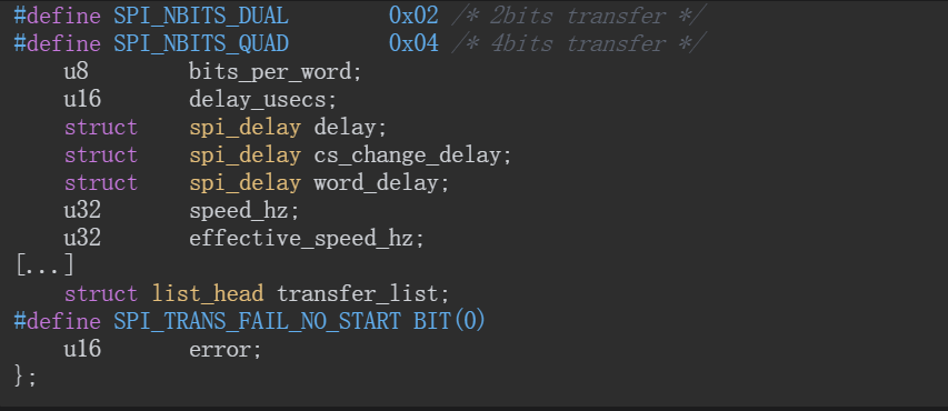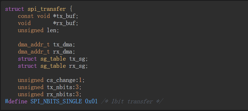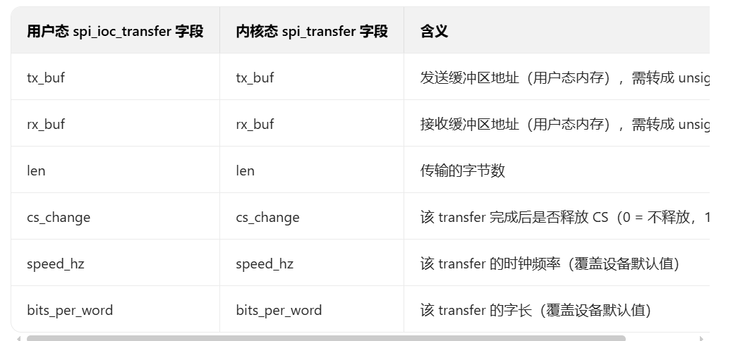 struct spi_ioc_transfer:用户态的 "传输单元"(对应内核的 spi_transfer)
