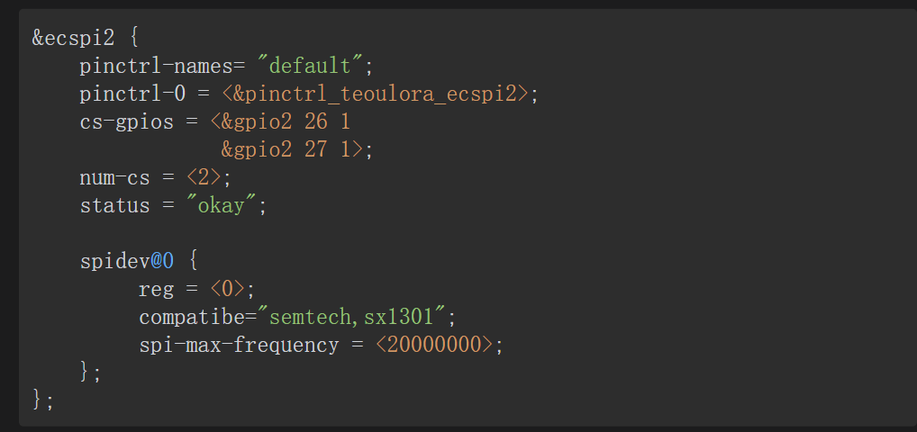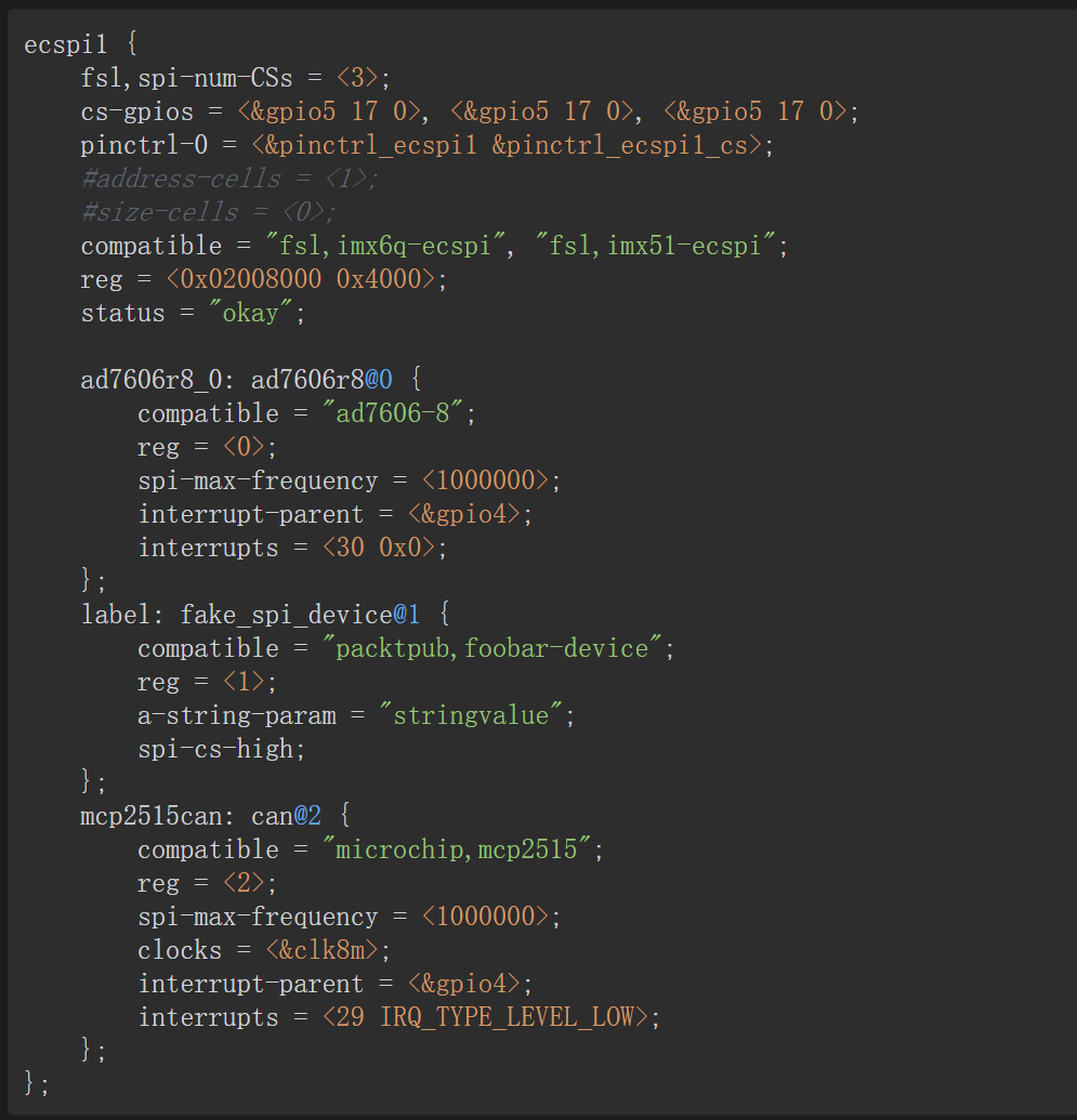 num_chipselect:指定分配给控制器的cs数量。cs用于区分各个SPI从设备,编号从0开始。