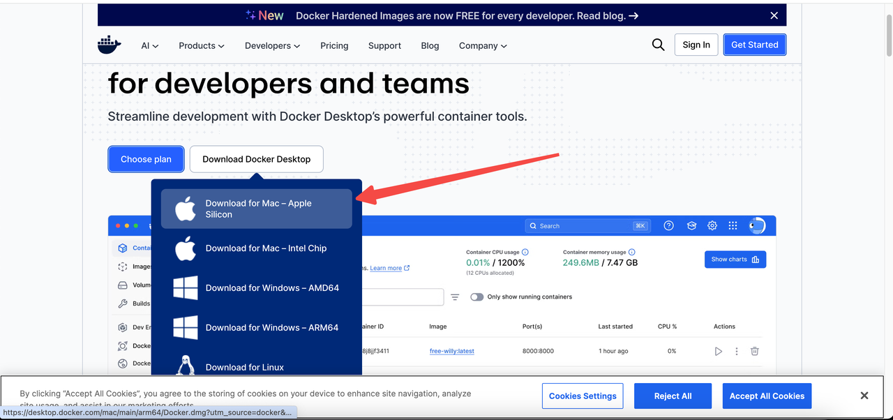 Docker Desktop 重启成功后,打开终端,输入以下命令并回车: