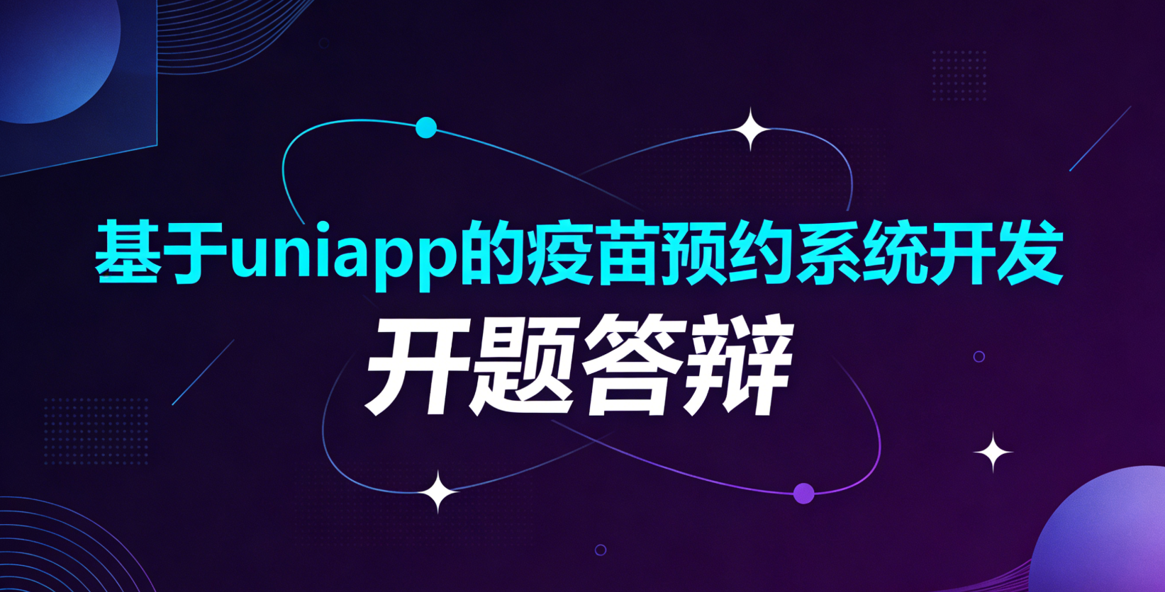 各位老师好,我是大数据201班的xx同学。我的课题是"基于 uni-app 的疫苗预约系统"。系统面向居民,提供手机端小程序,主要功能包括:用户注册登录、疫苗浏览与预约、接种点地图查询、预约消息提醒、个人中心查看历史记录。前端用 uni-app 开发,一套代码同时发布到微信和支付宝小程序;后端用 Node.js + Express 提供接口,MySQL 存数据;前后端通过 JSON 交互,整体技术简单、学习成本低。