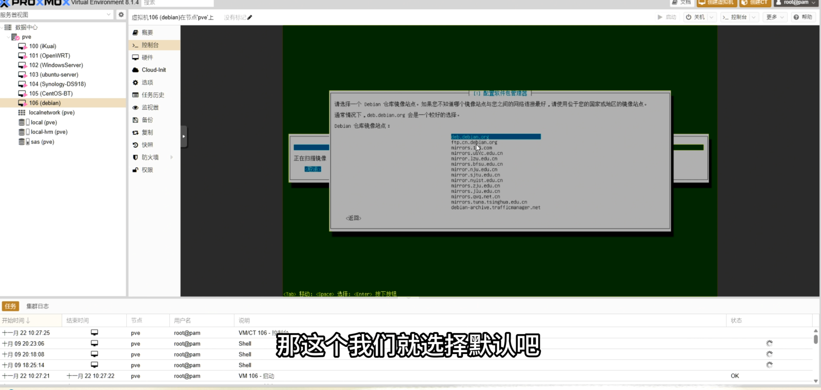- 软件包:否(不调查),中国镜像,继续。