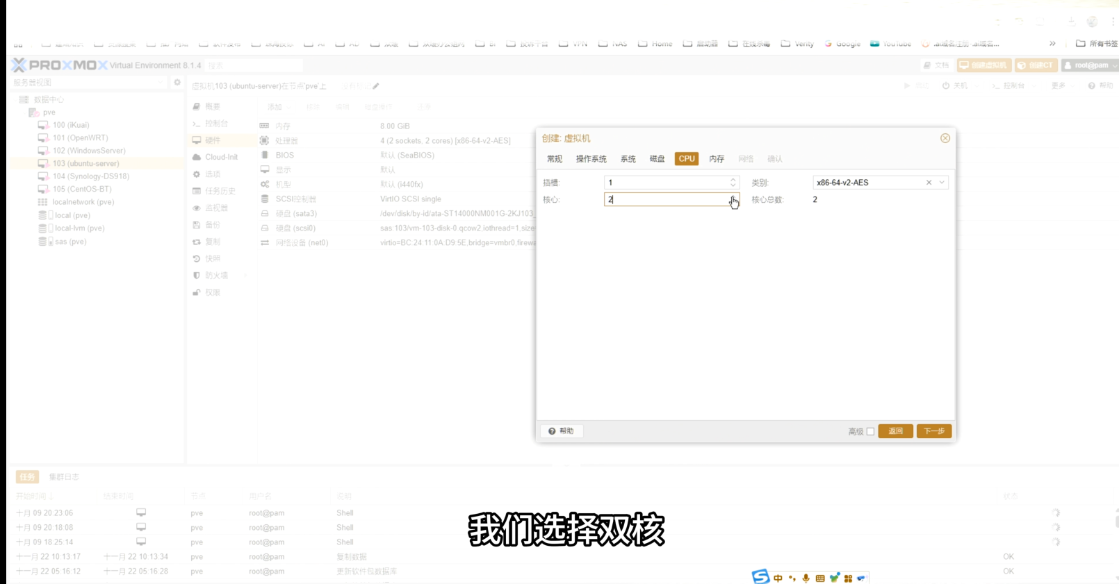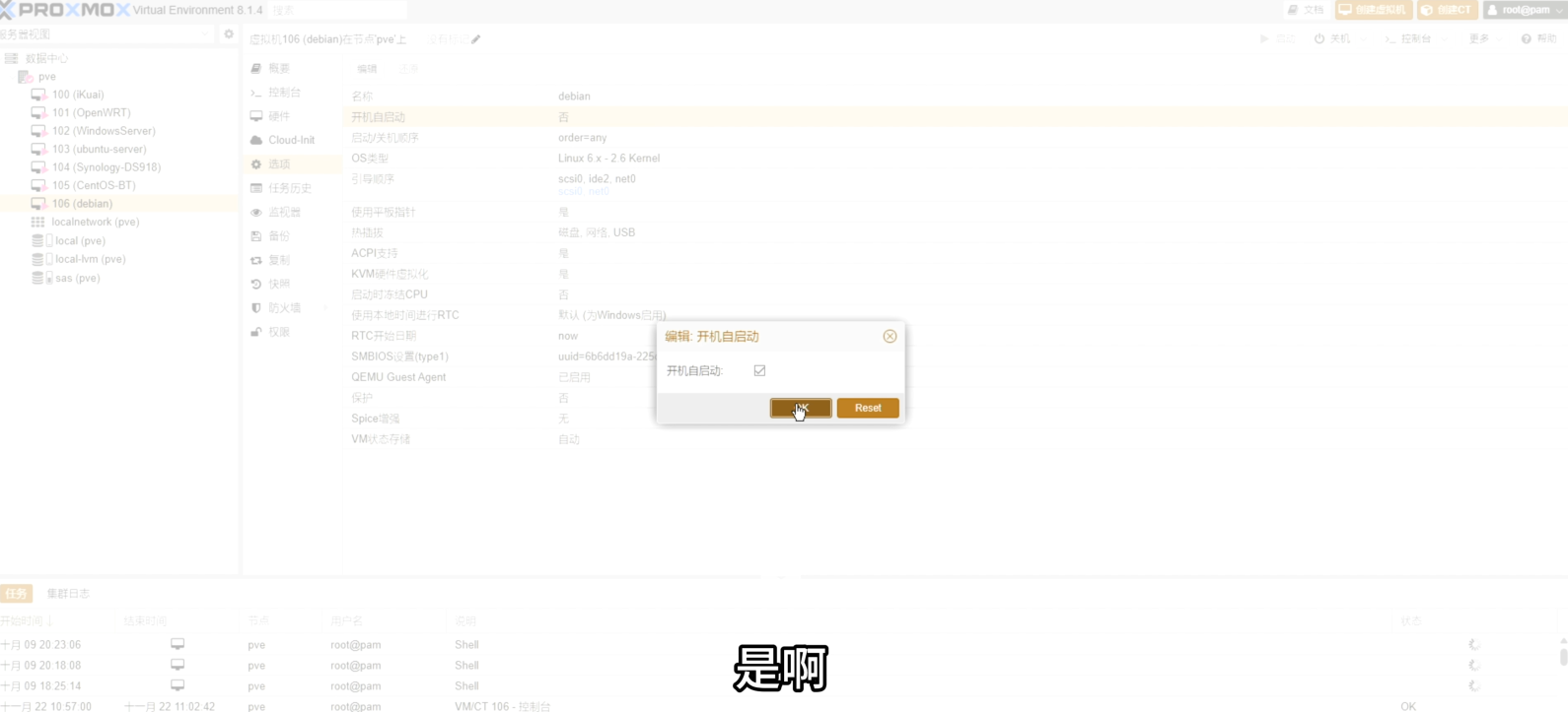 PVE面板 → 创建VM: