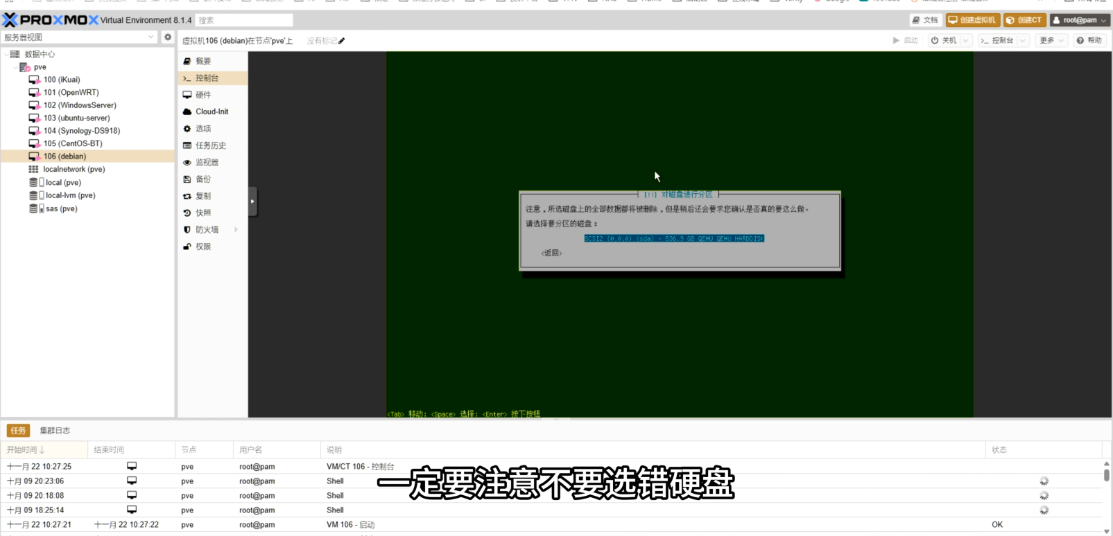 - OS:Linux,存储池选SAS(自定义),镜像选Debian ISO。