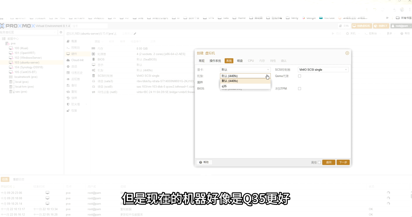 - 系统:机型Q35(新机器推荐),QEMU代理打勾。
