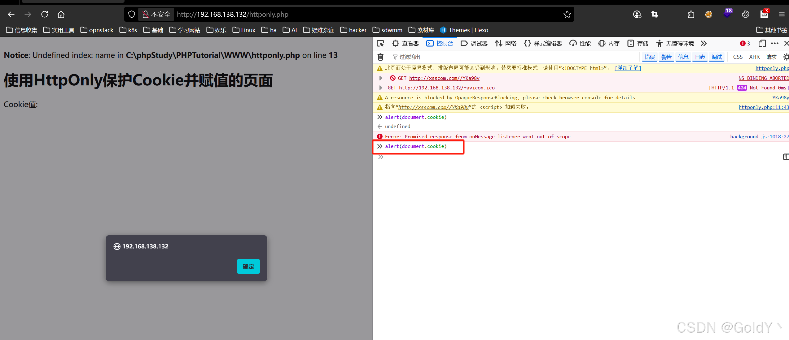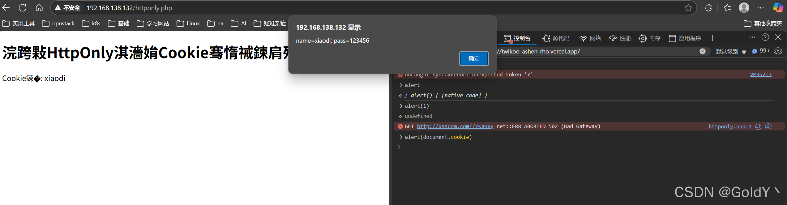 ``` 能够获取cookie  开启http-only ```使用HttpOnly保护Cookie并赋值的页面