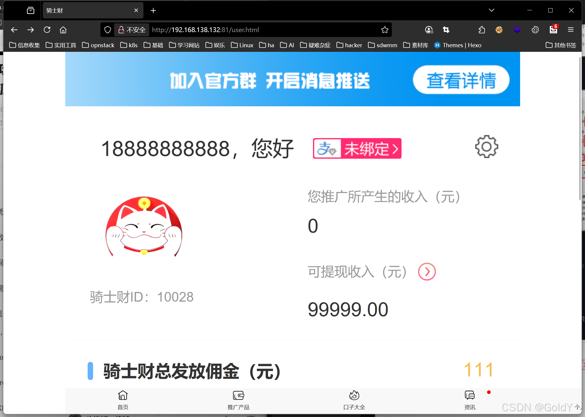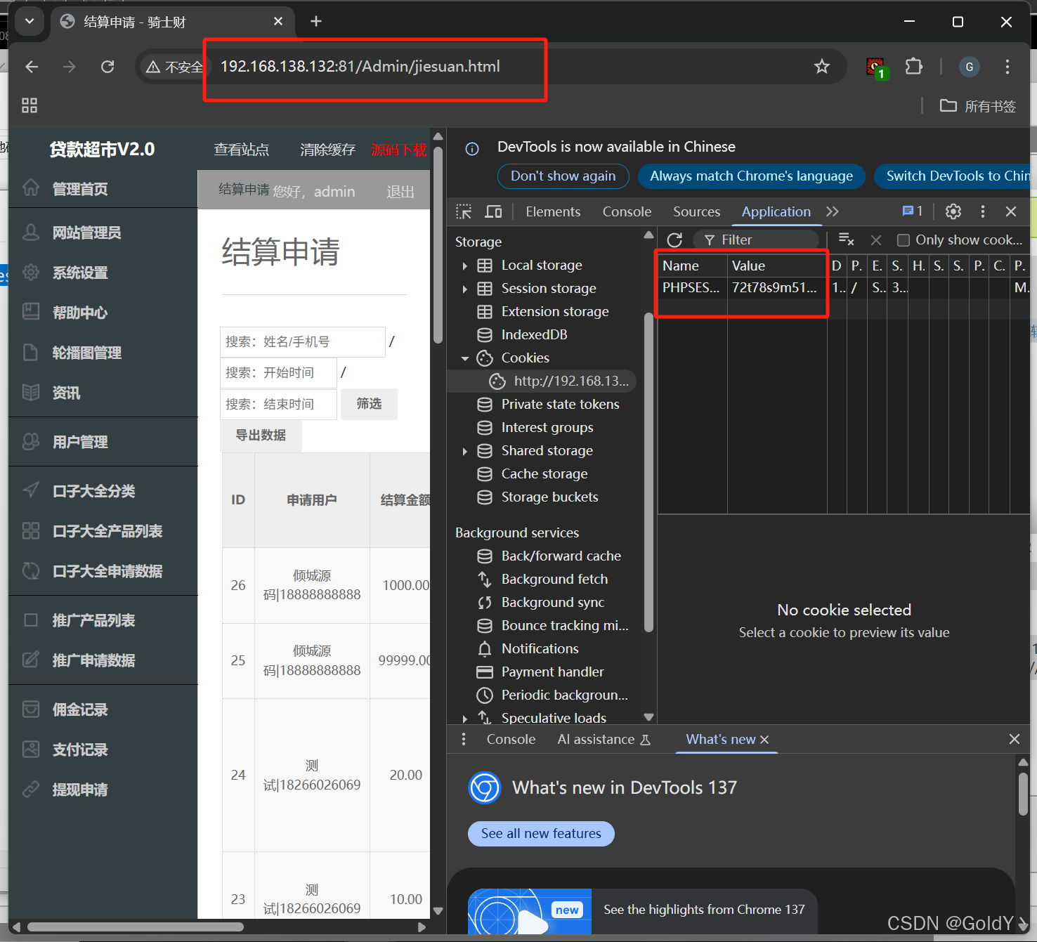 尝试进行登录,在F12-\>application-\>设置cookie-----\>在登陆页面修改获得到的url