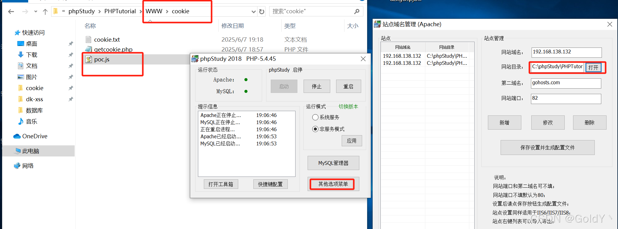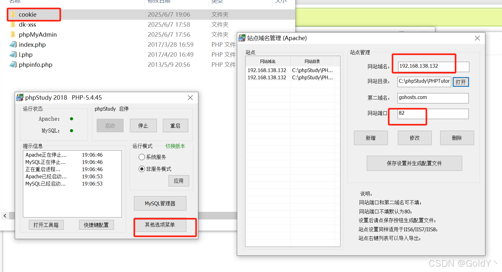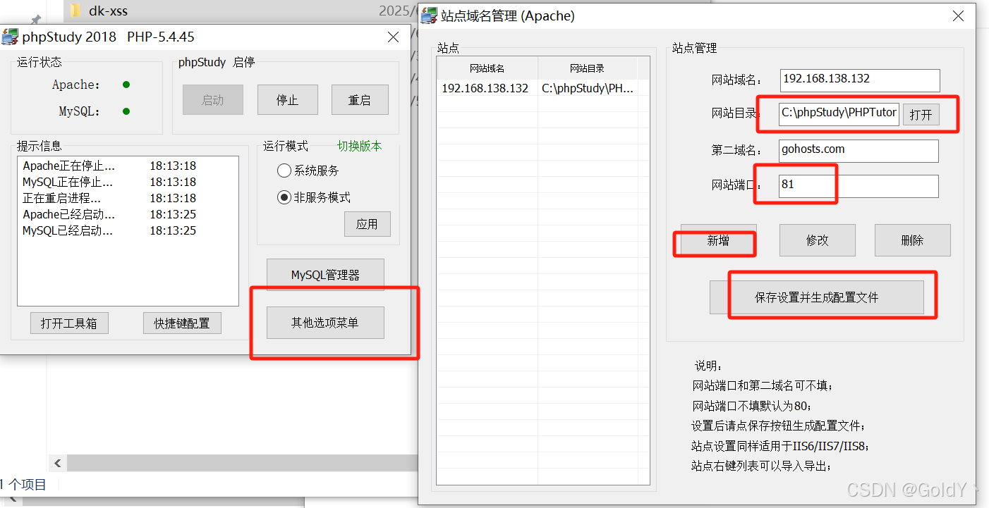 在phpstudy新增站点域名,阅读站点下的readme完成配置