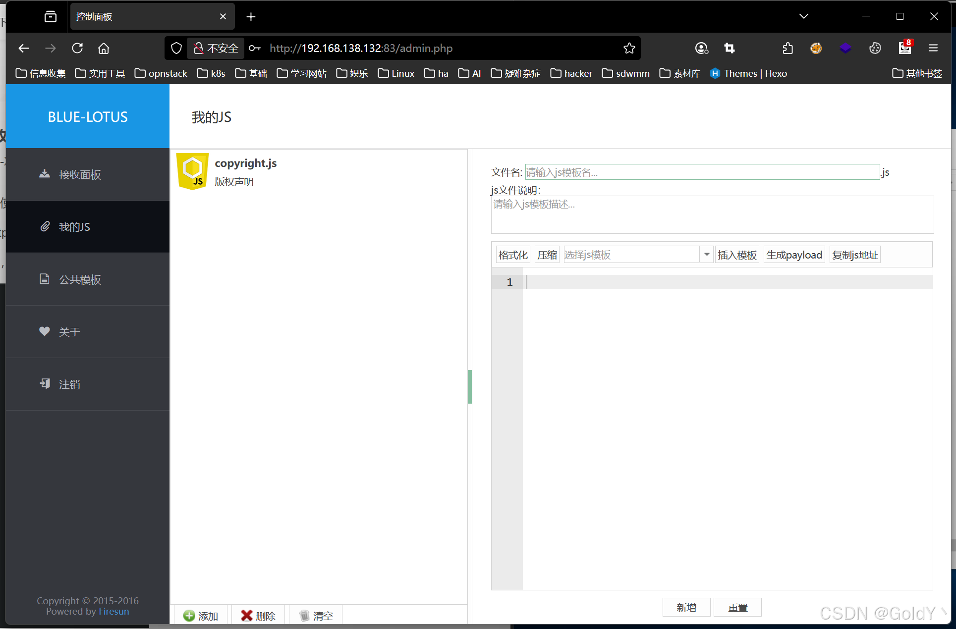 项目地址:[https://github.com/epoch99/BlueLotus_XSSReceiver-master](https://github.com/epoch99/BlueLotus_XSSReceiver-master "https://github.com/epoch99/BlueLotus_XSSReceiver-master")