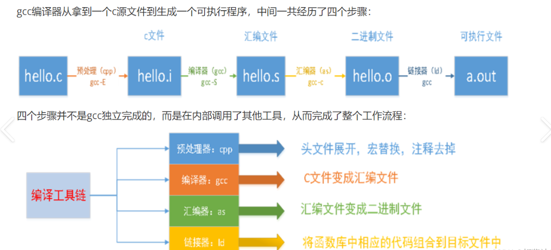 GCC编译过程分为四个主要步骤,每个步骤对应不同的编译选项。