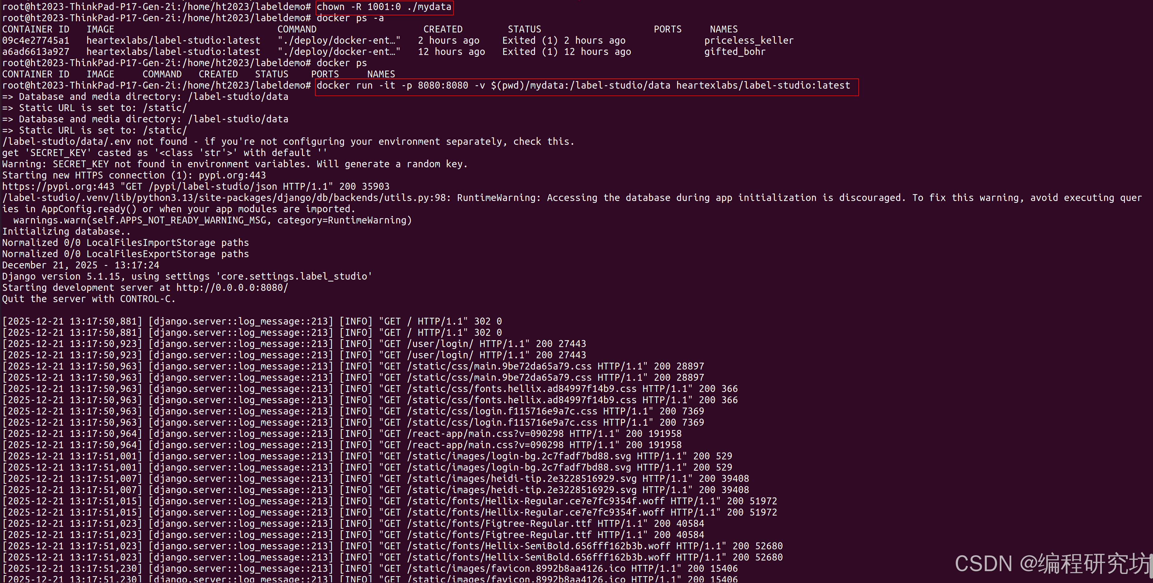 docker run -it -p 8080:8080 -v $(pwd)/mydata:/label-studio/data heartexlabs/label-studio:latest