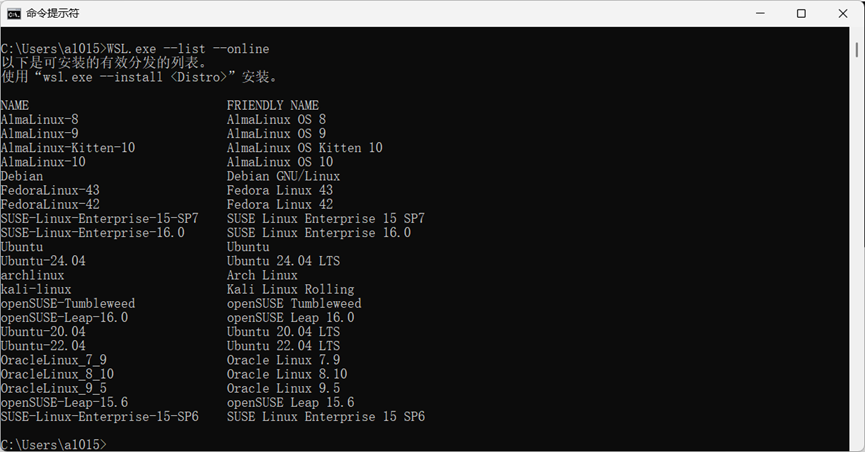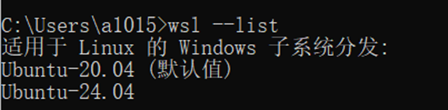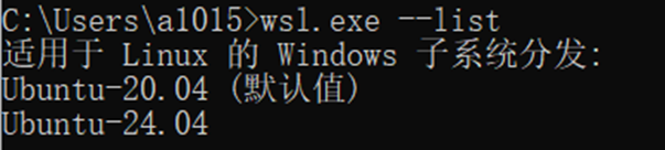12.如果和我一样,安装了多个版本,可以在命令行内输入wsl.exe --list,查看已安装的系统,如图: