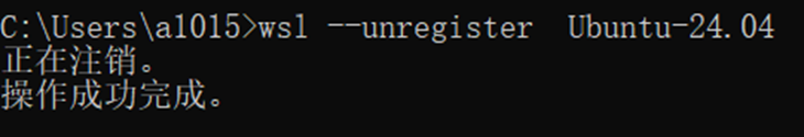 - 在命令行中输入wsl --unregister Ubuntu-24.04并回车。如图