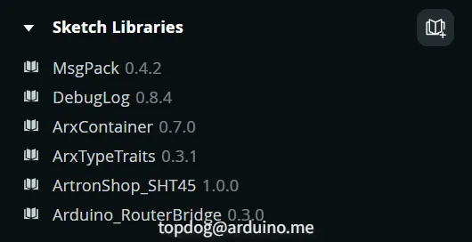 1,要安装ArtronShop_SHT45和Arduino_RouterBridge,Arduino_RouterBridge库没有安装好页面数据不会显示,之前的版本有bug现在已经修复好了。
