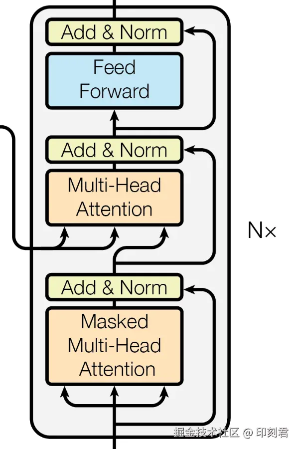 接下来的拆解, 我们将聚焦于 Decoder Only 架构的核心流程. 单独看解码器的结构.