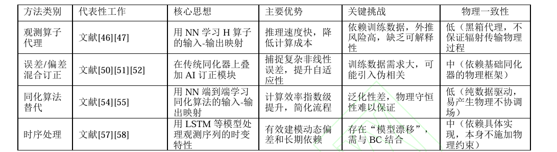 1、观测算子 𝐻负责把"模式空间的预报状态"映射到"观测空间",这样才能把模型和观测放到同一个尺度上比较,但对复杂遥感观测(例如卫星微波/红外亮温),物理 𝐻算子往往要解复杂的辐射传输方程(RTM),计算成本高昂,是同化系统主要瓶颈之一,DL 代理能在保持精度前提下降低开销,让同化更多卫星通道成为可能,并把"离线训练"换成"在线快速推理 "。