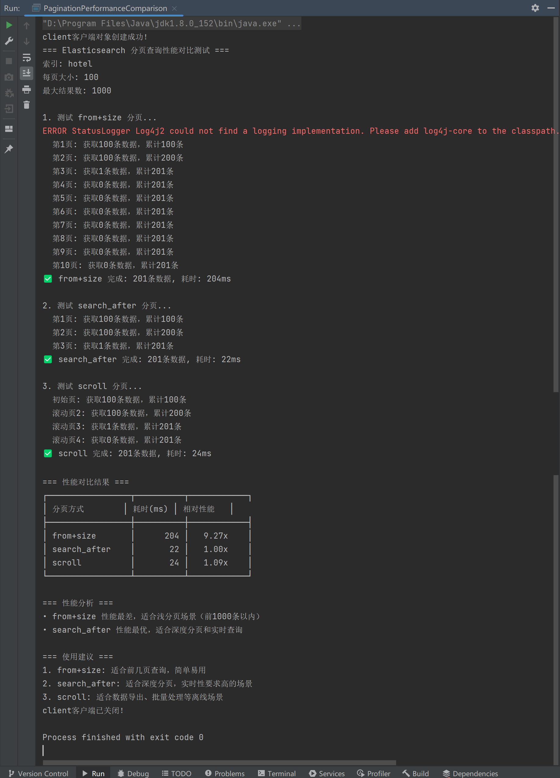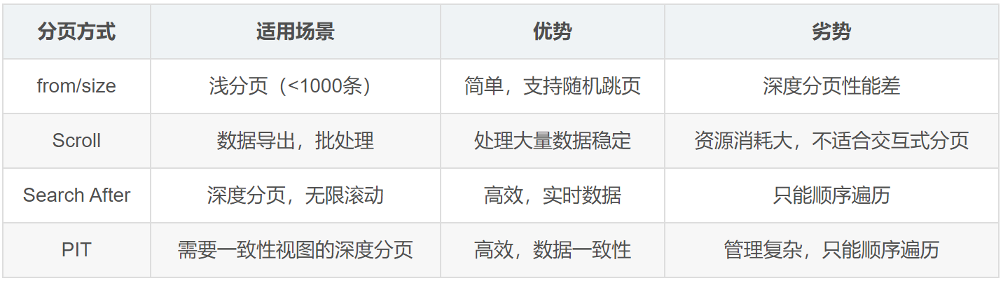 System.out.println("• search_after 性能最优,适合深度分页和实时查询");