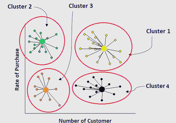 初始:随机选择K个数据点作为初始质心(centroid),其中K为预先设定的簇的数量。