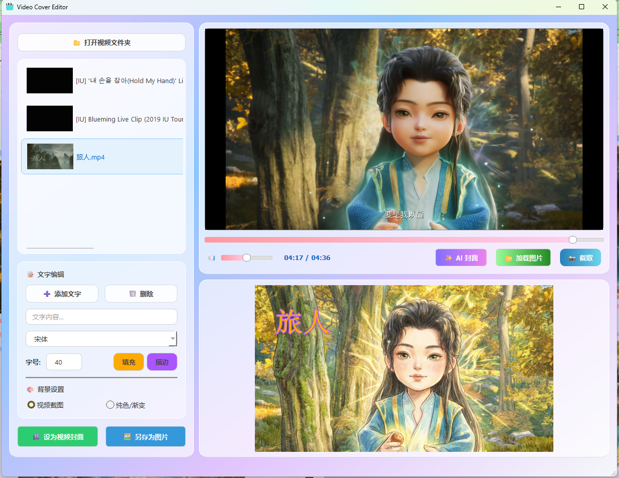 故,我做了一款快速编辑视频封面的软件,特点就是:快! 且加入了Google 的AI绘图模型(gemini-3-pro-image-preview),可以主动绘制封面,也可以将封面换成你想要的风格。