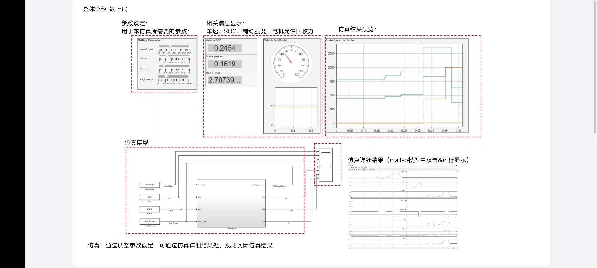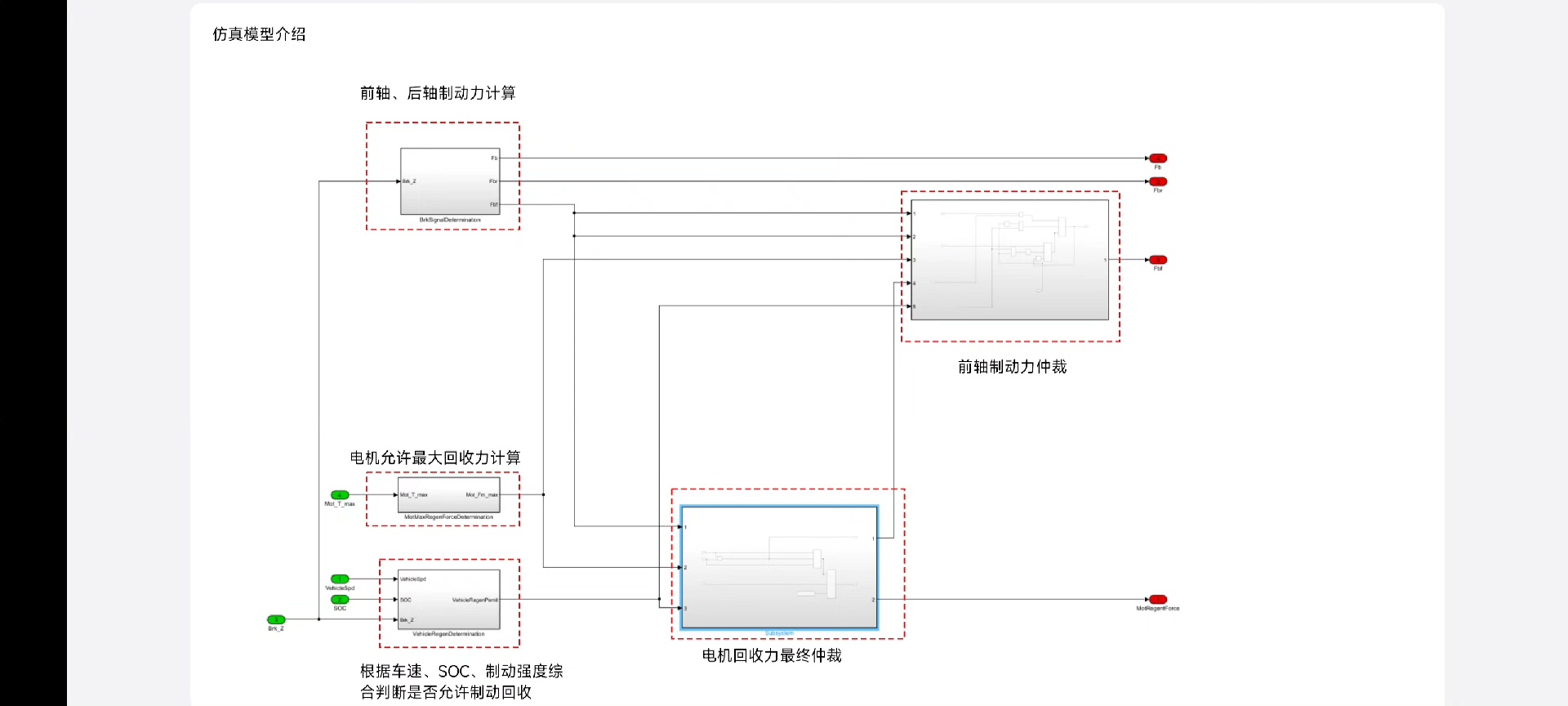 通过MATLAB和Simulink的结合,我们为汽车制动力分配和制动能量回收的研究提供了一个直观且有效的平台,能够快速验证各种理论和算法,为汽车制动系统的优化设计提供有力支持。
