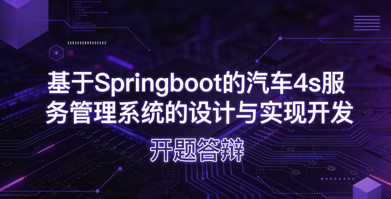 各位老师好,我是XX同学,本次毕业设计的题目是《基于SpringBoot的汽车4S服务管理系统的设计与实现》。系统面向三类角色:管理员、维修员和普通用户,核心功能包括用户注册登录、车辆维修预约、配件库存管理、维修评价以及后台数据维护。开发采用SpringBoot+MyBatis+MySQL技术栈,前端用JSP+Bootstrap,IDEA开发,Tomcat部署,计划2025年3月完成编码,4月完成测试与论文撰写。