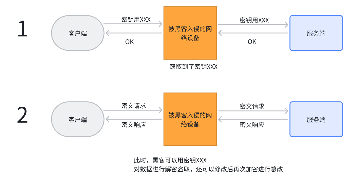 但如果把密钥协商的过程直接明文传输,黑客也能获取密钥