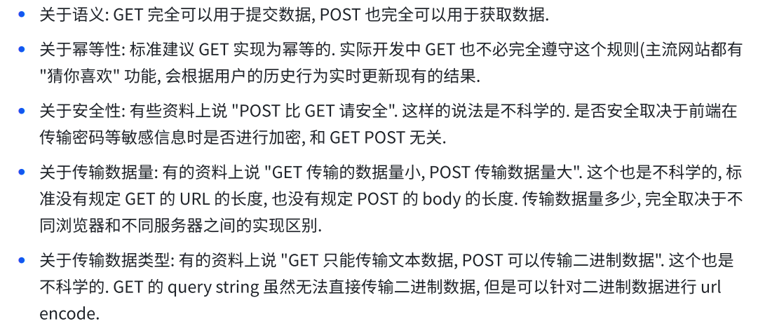 - GET 可以被缓存 , POST 不能被缓存(与幂等相关)