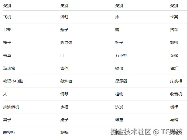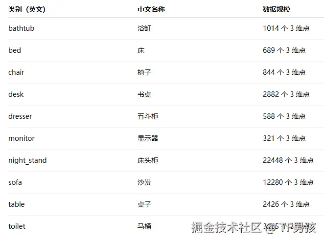ModelNet10是10个类别,还有个ModelNet40是40个类别: