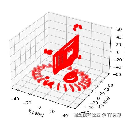 回忆一下,椅子的点云数据形状是(844,3),表示是844个点,每个点有(x, y, z)3个坐标。
