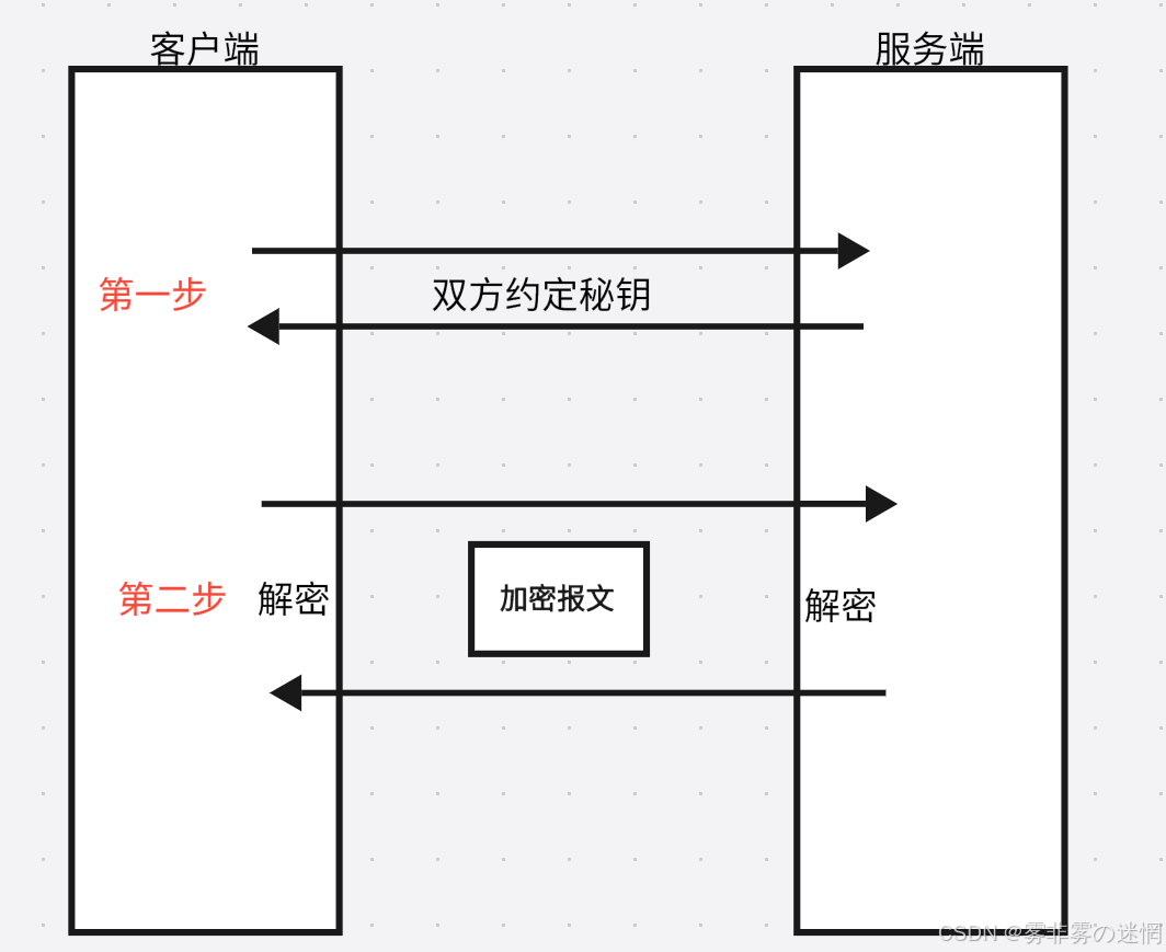 传输方式:双方共同商议一个秘钥,后面将报文先经过配套的加密处理,再用协商的秘钥进行解密