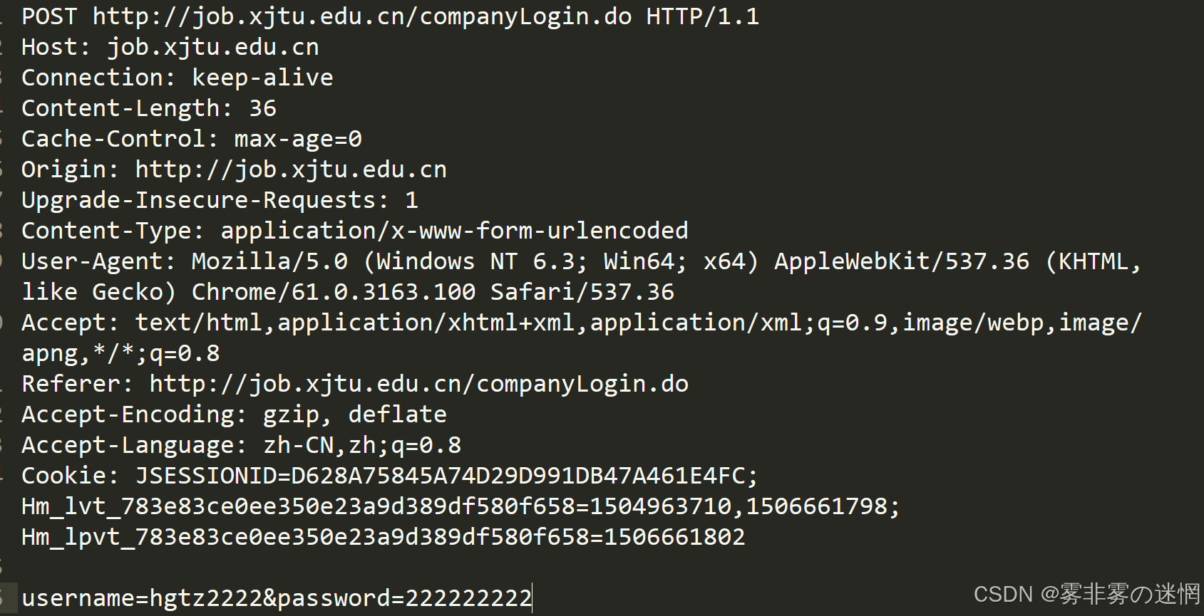 就比如一个原始的HTTP登录信息:
