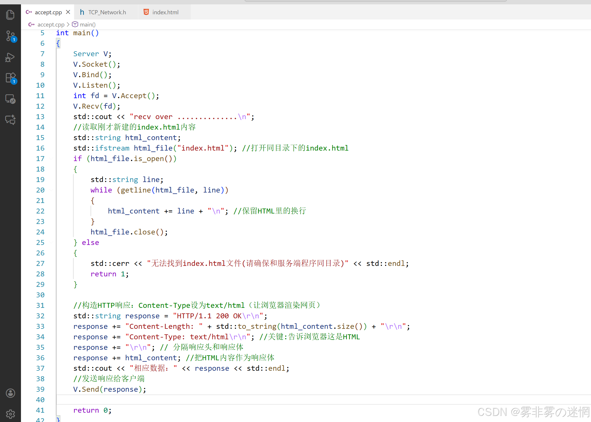 首先我们借助AI完成一个简单的HTML文件:当通过浏览器访问时将页面响应出来,例如: