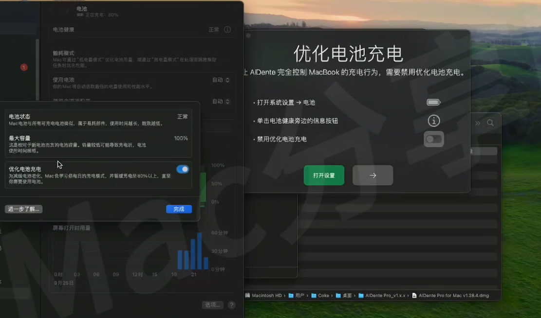 AlDente Pro for Mac,是一款充电限制保护工具,是可以限制最大充电百分比来保护电池的工具。锂离子和聚合物电池(如 MacBook 中的电池)在40% 至 80% 之间运行时,使用寿命最长。始终将电池电量保持在 100% 会大大缩短 MacBook 的电池使用寿命。