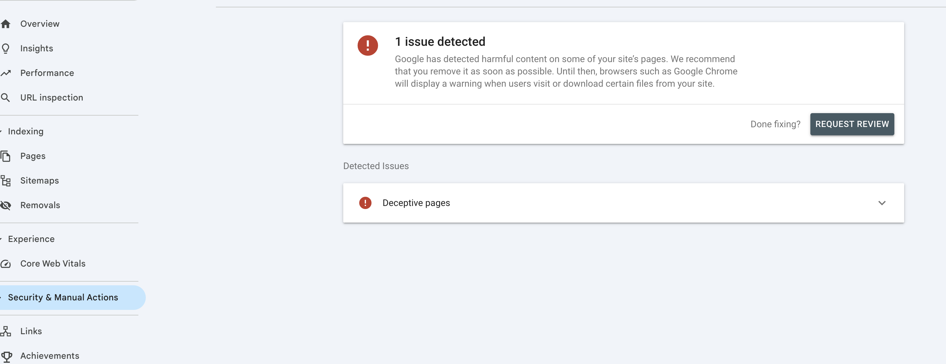 → Security & Manual Actions