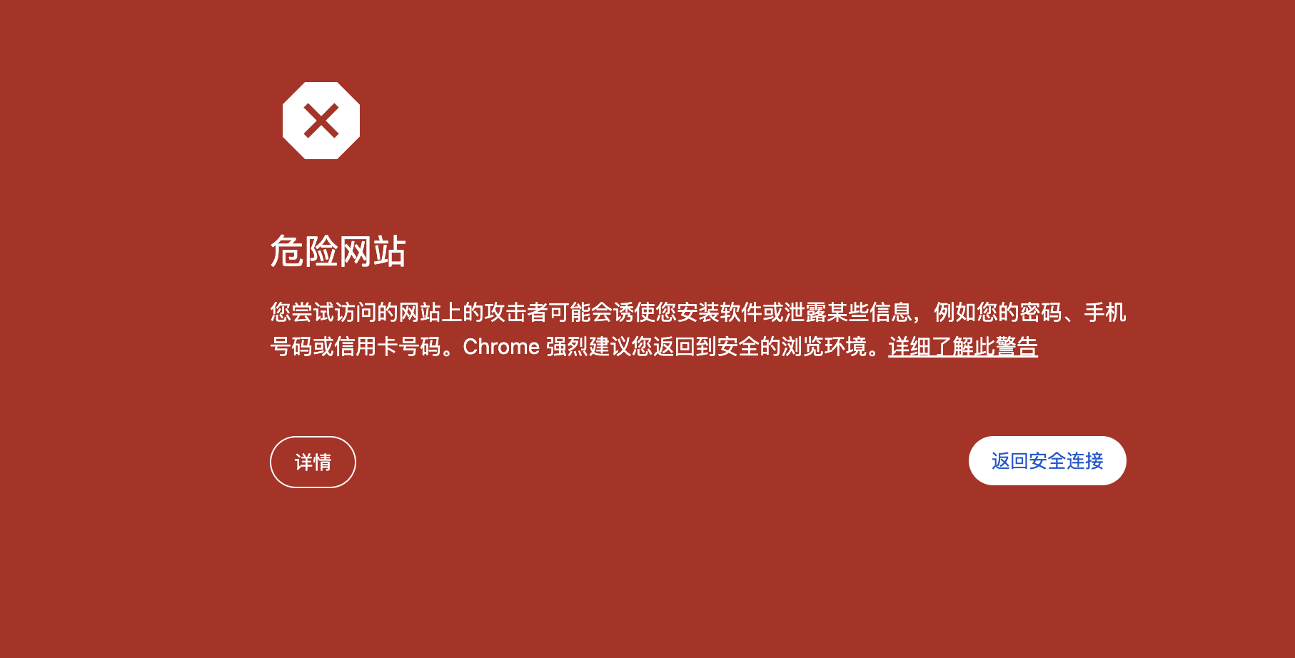 这是 Chrome 红页的权威来源,不是第三方检测工具。