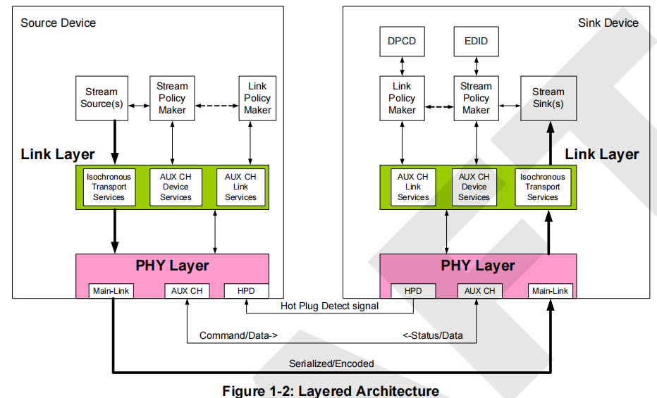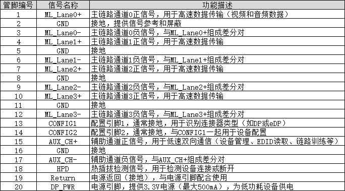 设备管理和多流传输(MST)配置。 - 热插拔检测(HPD)信号线HPD信号也可作为接收器设备的中断请求。
