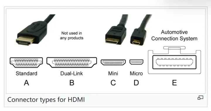 A、B、C、D和E型是不同的HDMI连接器类型。除B型外,所有连接器均有19引脚,但尺寸和规格各不相同。在这5种类型中,HDMIA、C和D是使用最广泛的HDMI连接器。HDMI B Type的数据传输能力比HDMI A type快近两倍,主要应用于专业设备,如专业显示器、摄像机等设备。