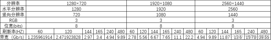 各种显示器分辨率所需要的带宽计算(自动计算表格见附件):