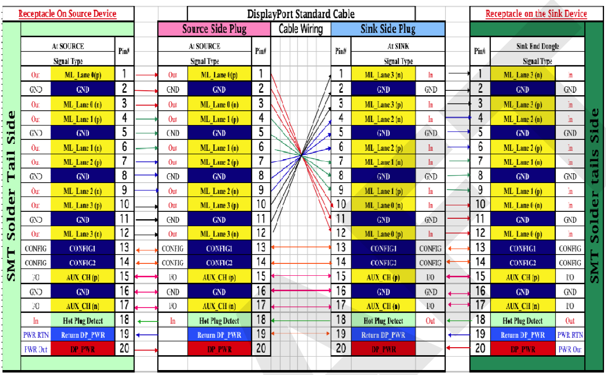 - 供电。用于盒对盒连接的DP连接器有一个电源引脚用于供电本地设备。DP_PWR提供3.3V电源,最大电流500mA。