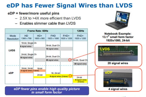eDP和LVDS对比: