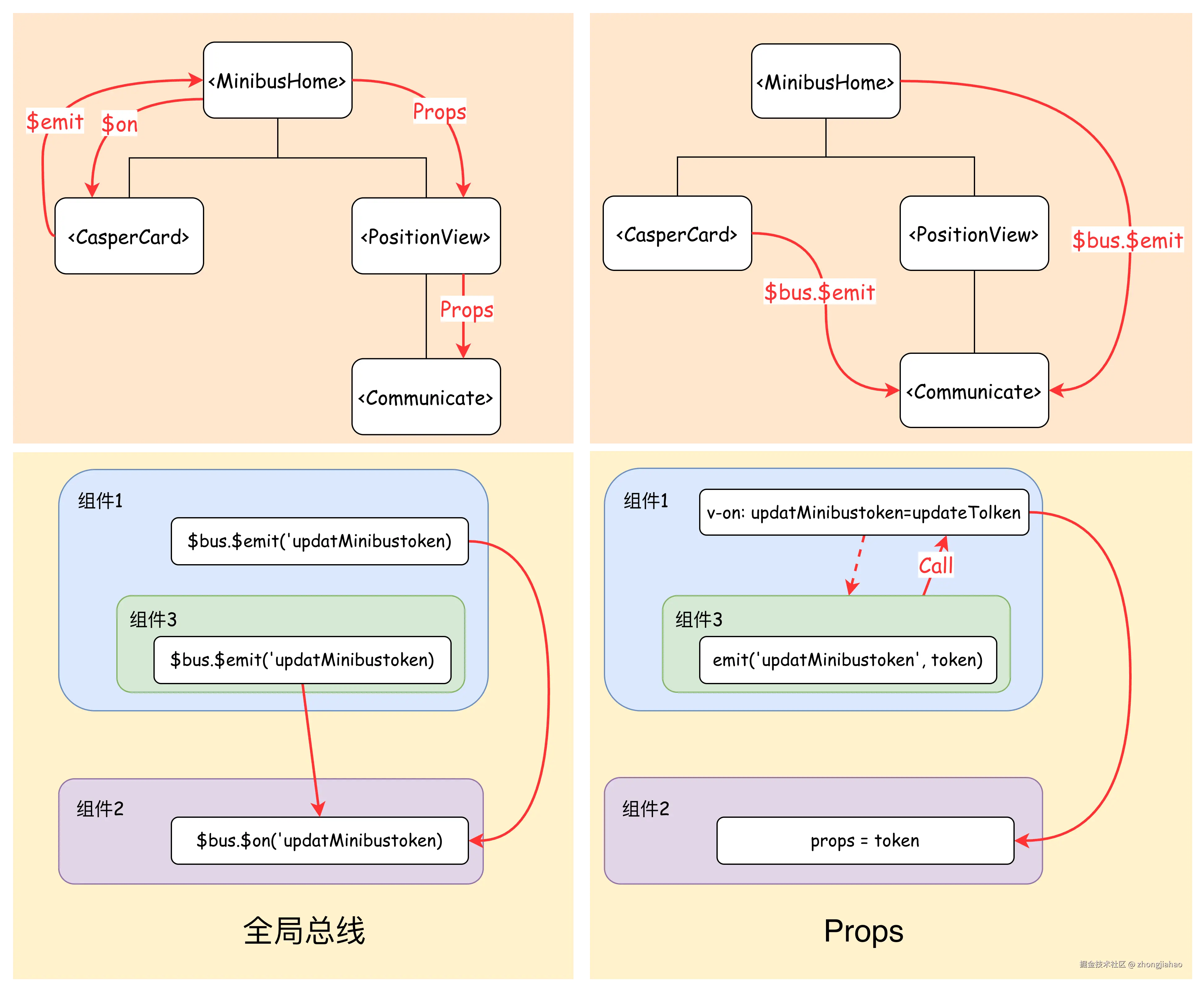 props 往下传,结构一变,整条传参链都要改;要么搞一个 event bus,到处$emit /$on。