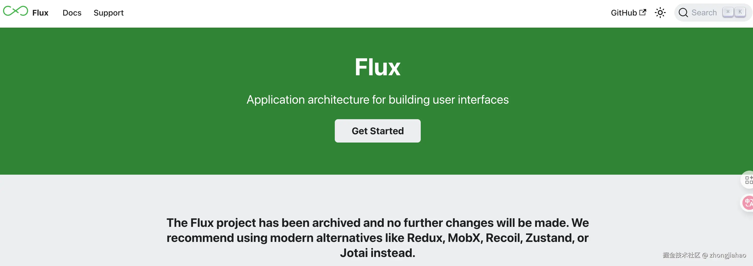 Vuex它的背后基本思想借鉴了Flux。Flux 是 Facebook 在构建大型 Web 应用程序时为了解决数据一致性 问题而设计出的一种架构,它是一种描述状态管理的设计模式。绝大多数前端领域的状态管理工具都遵循这种架构 (如Redux, MobX, Recoil, Zustand, otai, Vuex, Pinia)